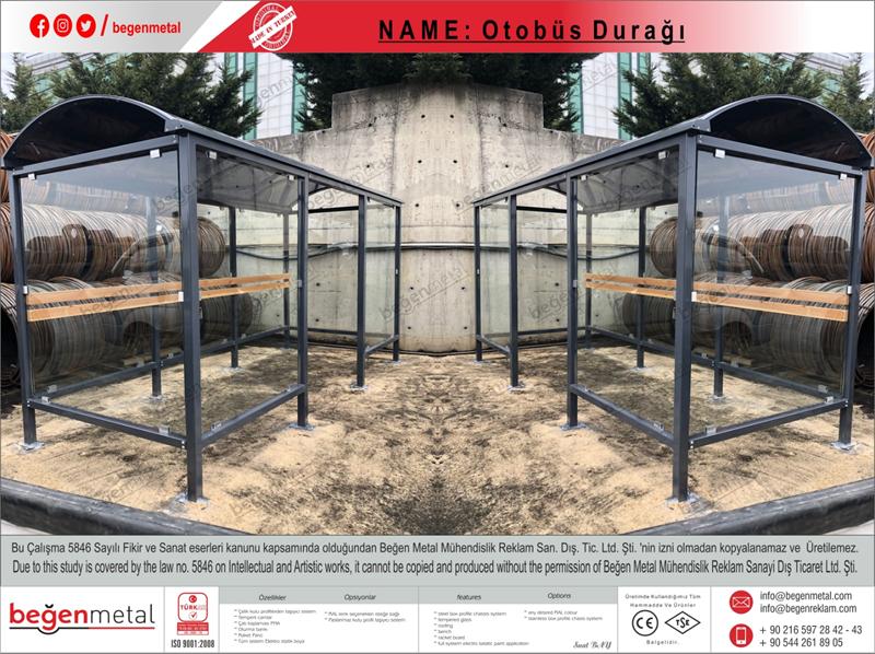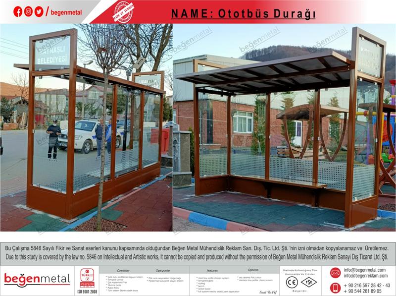 Çelik konstrüksiyon taşıyıcı sistemi ile uzun ömürlü kullanım sağlayan bu duraklar, zorlu hava koşullarına dayanıklıdır. Minimalist tasarımı sayesinde şehir estetiğini desteklerken, temperli cam arka panelleri ve koruyucu çatısı yolcular için güvenli ve konforlu bir bekleme alanı sunar. Üstelik, reklam panosu ekleme opsiyonuyla belediyeler ve işletmeler için gelir elde etme fırsatı yaratır. Elektrostatik boyalı yüzeyi, paslanmaya karşı üstün koruma sağlarken, kaliteli malzeme ve işçilikle üretilen bu duraklar, tasarruf ile şıklığı bir araya getirir.