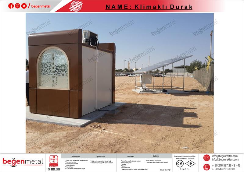 Kapalı otobüs durakları, yolcuları soğuk, yağmur ve rüzgar gibi zorlu hava koşullarından korurken; klimalı modeller, yazın sıcağında serinlik, kışın ise sıcak bir bekleme alanı sağlıyor. Kapalı ve klimalı durak çözümleri, özellikle yoğun kullanılan şehir merkezleri ve toplu taşıma güzergahlarında ideal bir çözüm sunuyor.