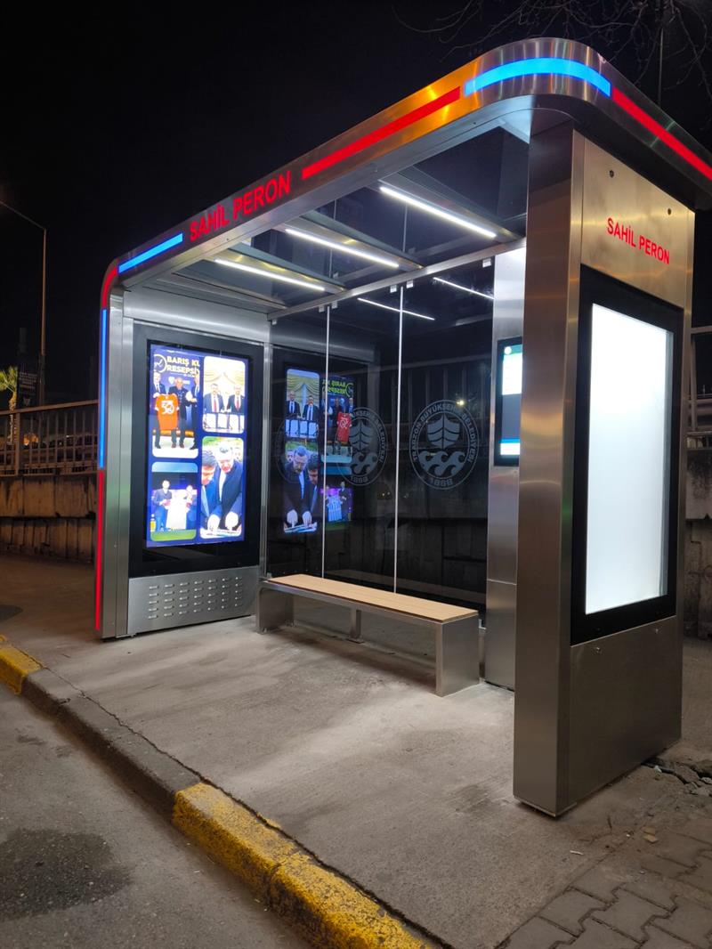 Raketli Paslanmaz Durak, Akıllı Duraklar , Led Işıklı Konforlu ,Dijital Sistemli, Yolcu Bilgilendirme Ekranı,